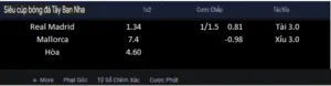 Kèo châu Á (Cược chấp toàn trận): Real Madrid chấp Mallorca 1/1.5 (1.25):