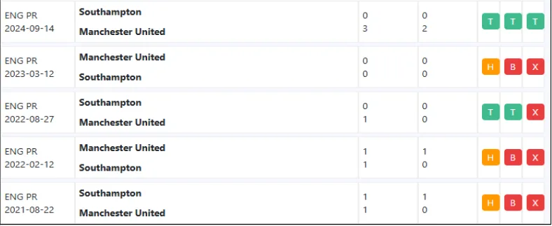 Thống kê phong độ, lịch sử đối đầu của Manchester United vs Southampton: